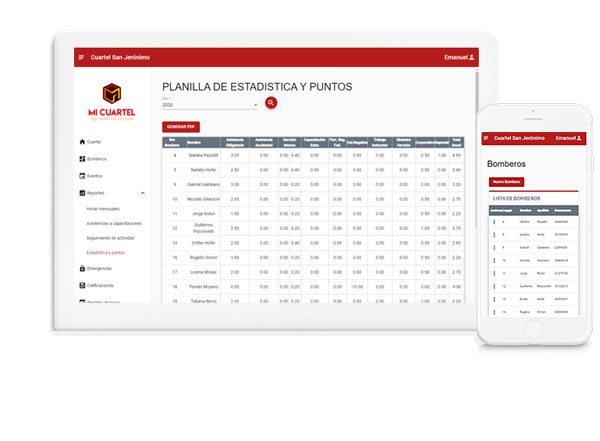 Un tablero de control permite administrar toda la información, generando automáticamente los registros de asistencias, cantidad de horas mensuales y puntajes acumulados, a partir de la administración de tareas, asistencias e inasistencias a los eventos y emergencias.